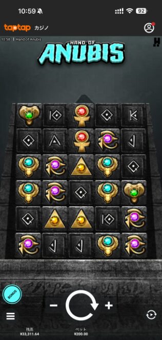 【特徴】 古代エジプトの死神をテーマにした、少しダークなスロット。見た目はシンプルですが、内部仕様はかなり攻めています。「ソウルオーブ」と呼ばれる玉が倍率を吸い込み、爆発的な配当を生み出します。海外プレイヤーからの支持が非常に厚い一本です。